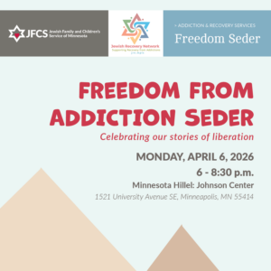 The Jewish Recovery Network (JRN) and Jewish Family and Children’s Service of Minnesota (JFCS) invite you to the annual FREEDOM FROM ADDICTION SEDER: Celebrating Our…