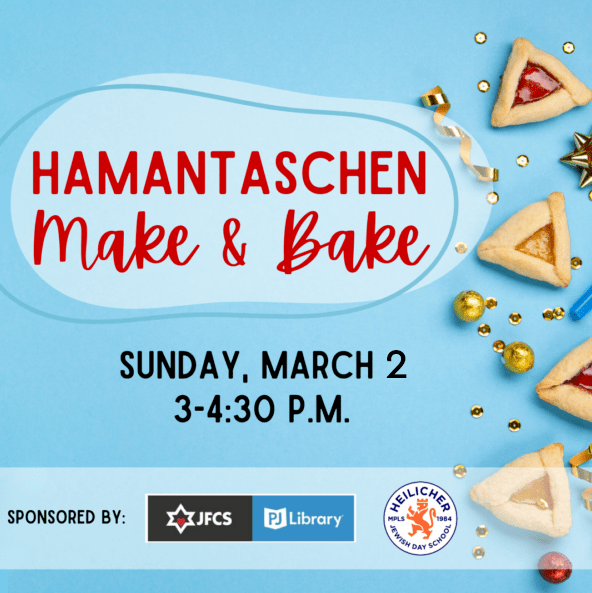 Come make hamantaschen with PJ Library at Heilicher, our community Jewish Day School! Take home your ‘taschen, along with a keepsake PJ Library apron, Purim crafts, and more! This event is geared towards children ages 3-8, but all are welcome.