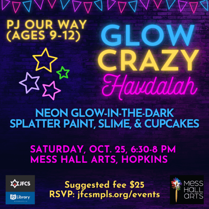 JFCS 5905 Golden Valley Rd, Golden Valley, MNSUNDAY, SEPTEMBER 7 9:30-11 A.M. JFCS, GOLDEN VALLEY Join Parent Connector Rachel for a morning full of creativity. Gaby Engler, owner of The Art Room MN and fellow PJ Library mom, will lead a very special art class. Together with your little, you will create an heirloom-quality Rosh Hashanah-themed tea towel that you will cherish... Read more »