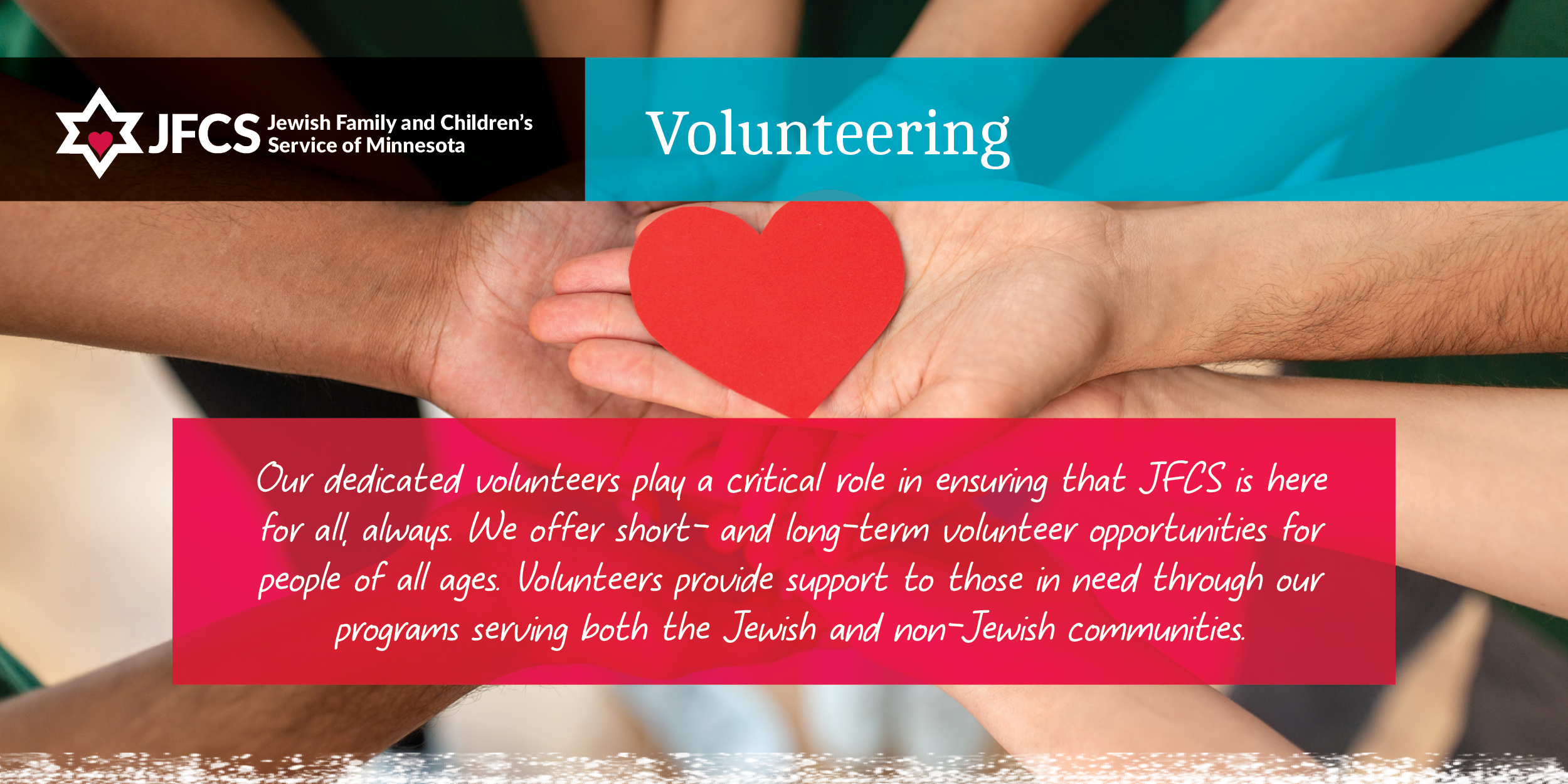 For more information on JFCS Volunteer Services, click here or contact Dana Shapiro, Community and Volunteer Engagement Manager, at dshapiro@jfcsmn.org.