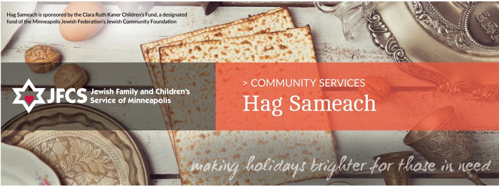 Each year, JFCS provides referred individuals and families in need with a gift bag of ritual Passover foods and other meaningful items to help celebrate this holiday. As part of JFCS’ Hag Sameach (Happy Holidays) program, this gift is often a family’s only opportunity to obtain the items it needs to celebrate the rich traditions of Passover.